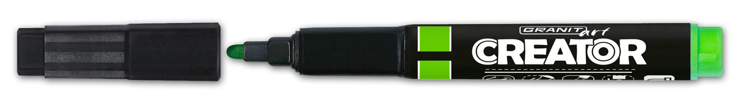 papier (nie „przebija” na drugą stronę), ceramika, kamień, skóra, tkaniny (po zaschnięciu nie spierają się) - farba akrylowa na bazie wody